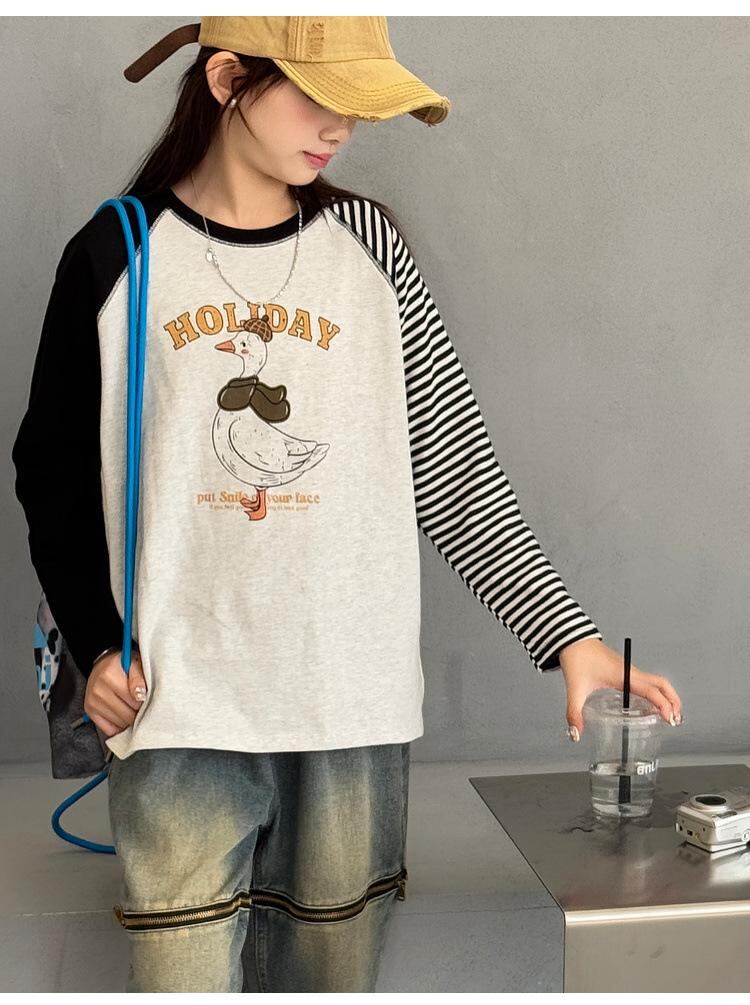 子供服 Tシャツ 女の子 長袖 トップス 春秋 大童サイズ 綿100% 吸湿速乾 カートゥーン プリント かわいい カジュアル 普段使い グレー 120cm 130cm 140cm 150cm 160cm 170cm