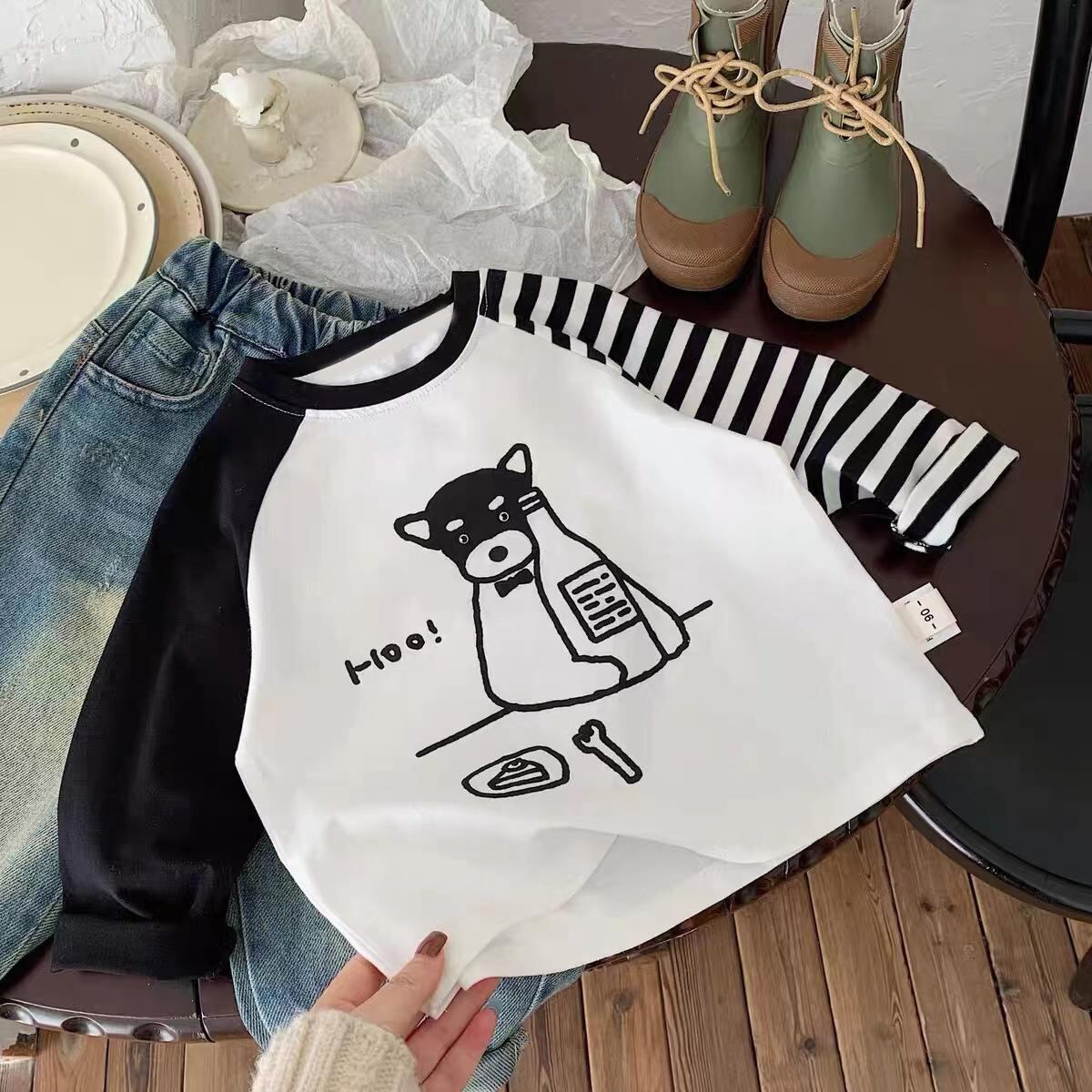 Tシャツ 子供 ストライプ袖 長袖 男女兼用 ベビー トップス カットソー 春秋 綿100% 吸湿性 通気性 普段着 かわいい