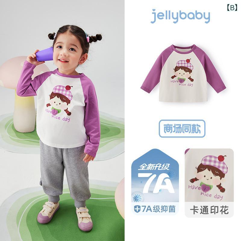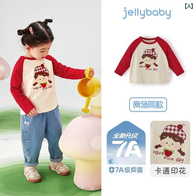 Tシャツ キッズ 長袖 春秋 かわいい 撞色 トップス ベビー 子供服 抗菌 綿 大紅 紫紅 玫粉