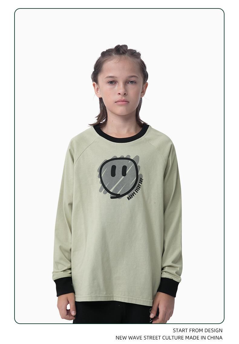 子供服 Tシャツ 長袖 男女兼用 コットン100% 吸湿速乾 グレー 深灰色 灰緑色 春秋 中大童 8歳以上 アメカジ 潮 ブランド 親子