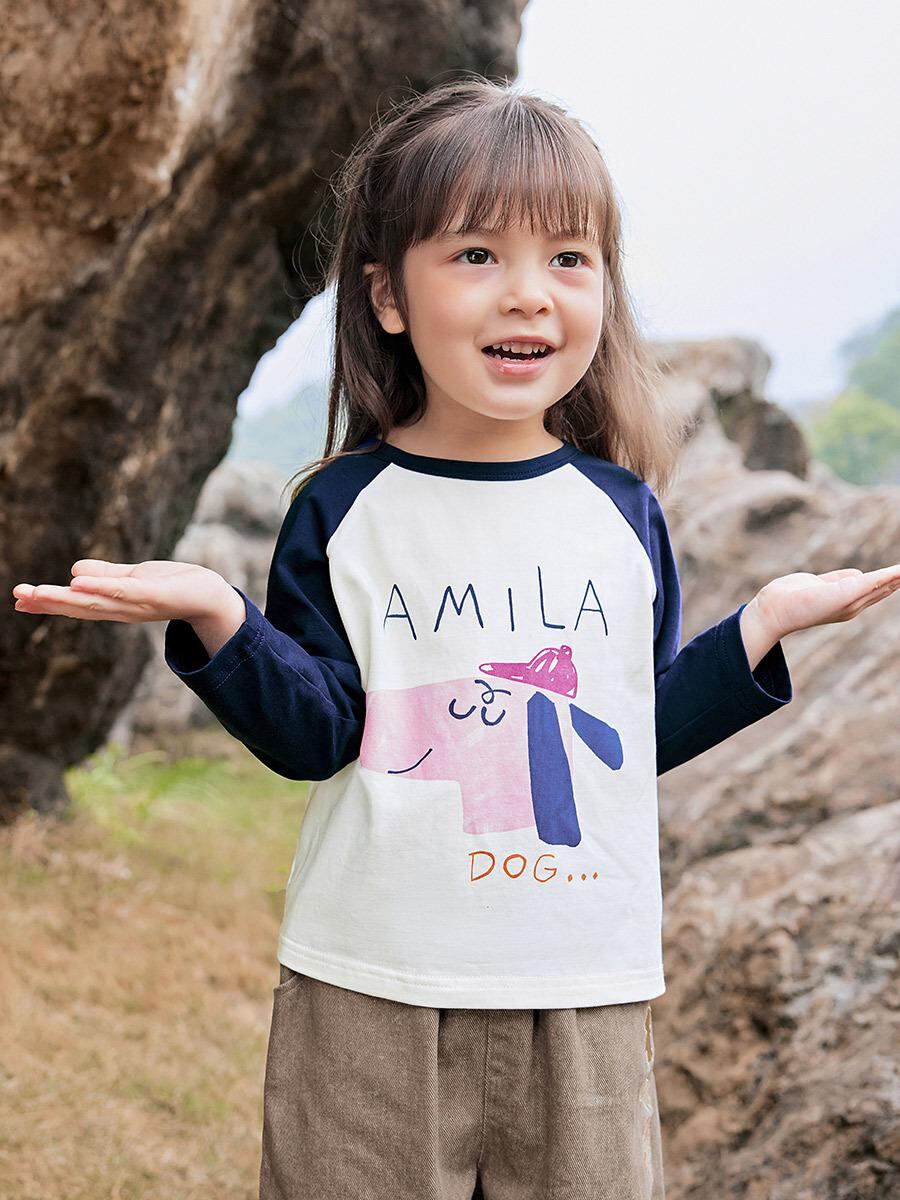 Tシャツ キッズ 女の子 かわいい 切り替え 長袖 トップス カットソー 春秋 普段使い 綿100% 90cm 100cm 110cm 120cm 130cm 140cm 150cm 紺色 ピンク系