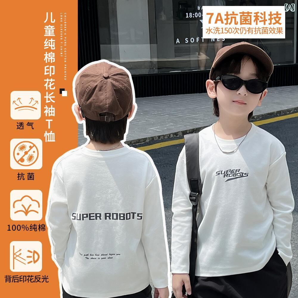 子供用Tシャツ 長袖Tシャツ カットソー 春秋 ベビー キッズ 男の子 女の子 子供服 トップス 反射プリント 綿100% 抗菌 普段使い