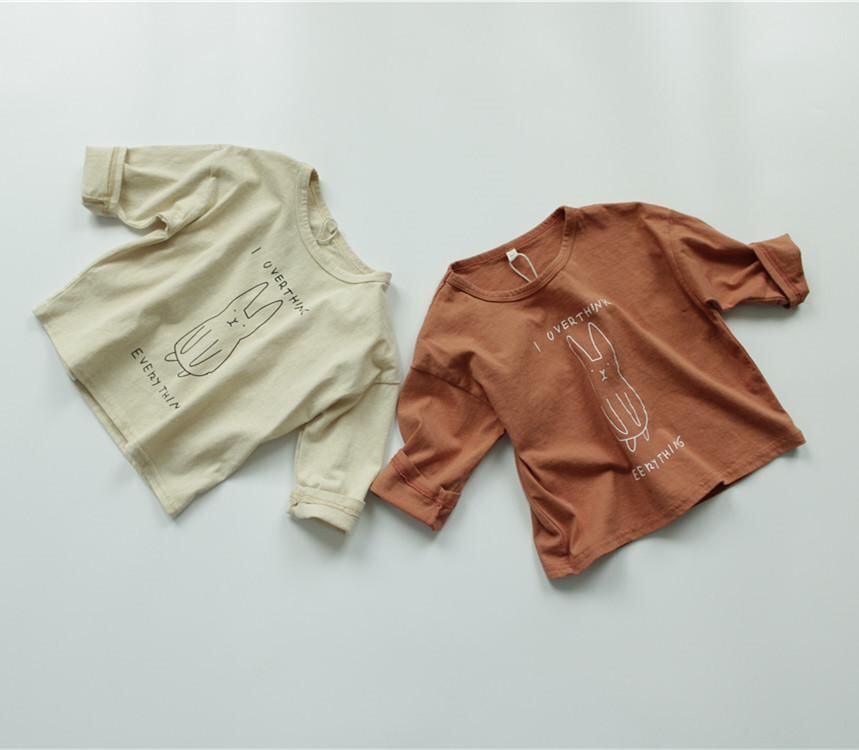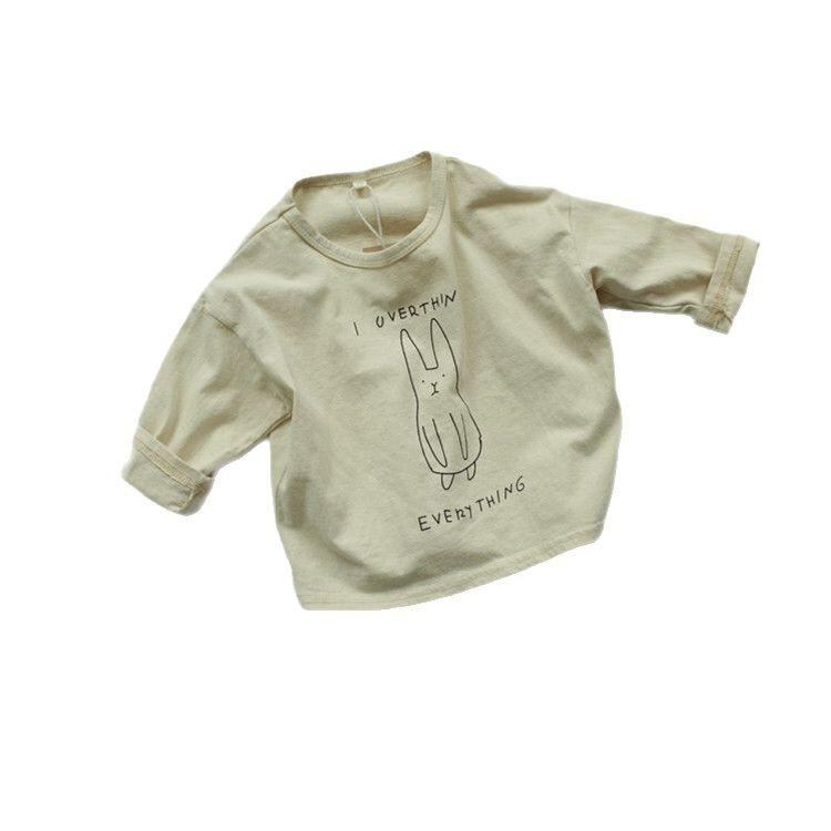 キッズ Tシャツ 長袖 カットソー 子供服 男女兼用 韓国風 プリント トップス 綿100% かわいい 普段着 ベビー 幼児 春秋 保育園 幼稚園 ベージュ ピンク系