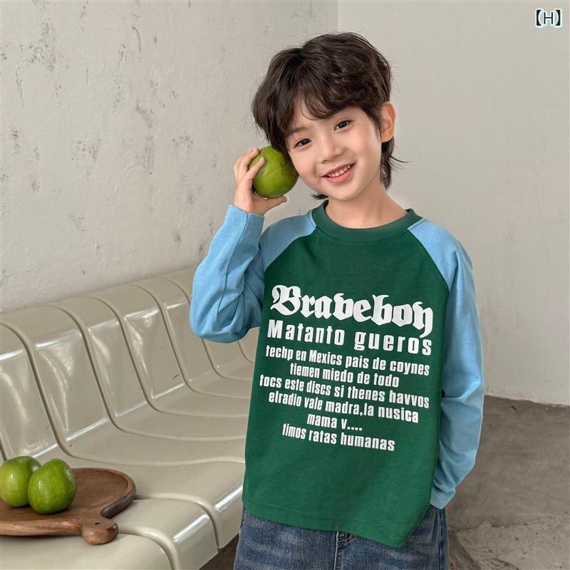キッズ Tシャツ 男の子 長袖 春秋 綿 プリント カットソー トップス 子供服 韓国風 アニマル柄 保温