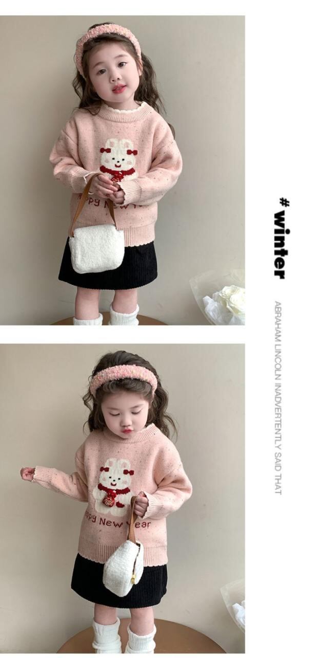 ニット セーター ガールズ 子供服 秋冬 長袖 丸首 トップス かわいい おしゃれ 厚手 暖かい 防寒 ピンク系