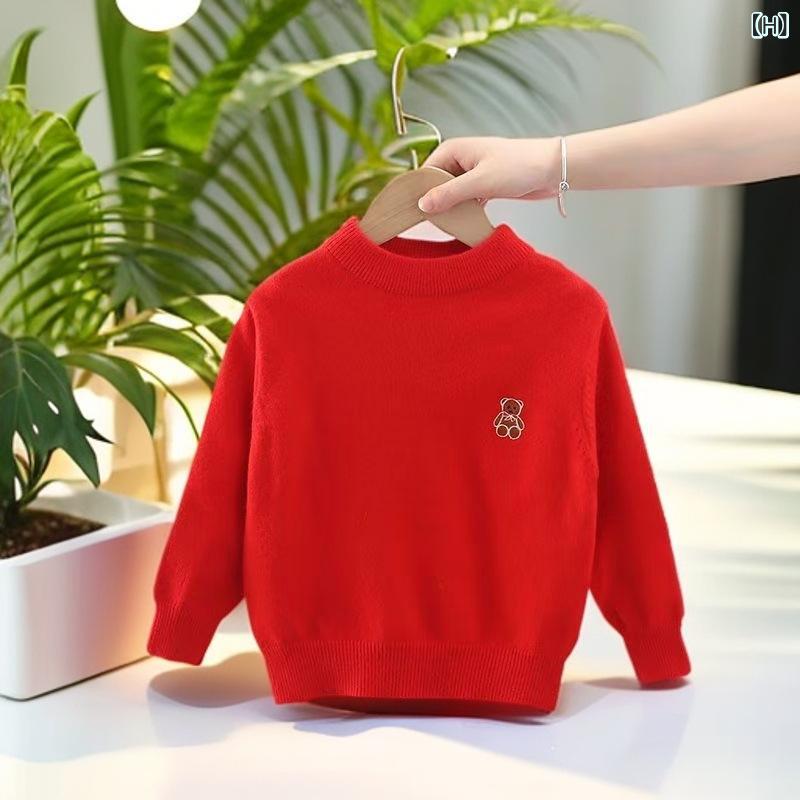子供服 ニット・セーター 韓国風 ベビー・キッズ 秋冬用 長袖トップス カットソー かわいい漫画柄 裏起毛 普段着 部屋着 男の子 女の子 90cm 100cm 110cm 120cm 130cm 140cm