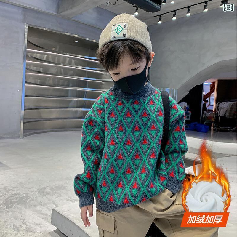 子供服 ニット セーター 男の子 緑 裏起毛 秋冬 韓国風 子供 ケーブルニット 厚手 ジュニア 暖かい 通学 普段使い