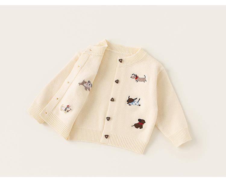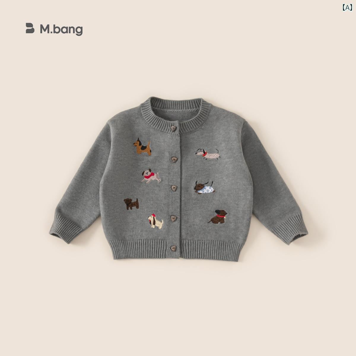 ニット・セーター キッズ 女の子 韓国風 子供服 ニット カーディガン ベビー服 ニット アウター 丸首 長袖 秋冬 グレー アイボリー