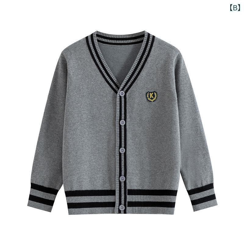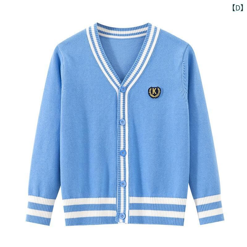 ニットカーディガン キッズ 男女兼用 子供服 Vネック ストライプ柄 スクール風 トップス 通学着 普段着 コットン 綿 8歳 9歳 10歳 11歳 12歳 13歳 14歳 春秋