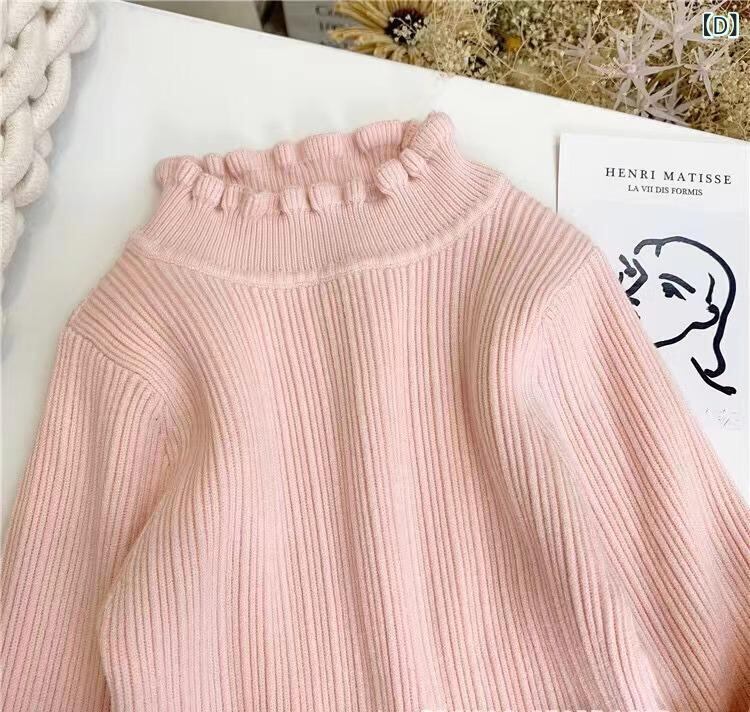 ニット 女児 秋冬 ニットトップス カットソー 長袖 セーター 子供 高齢 襟付き フリル襟 かわいい ガーリー やわらか あったか 通園 通学