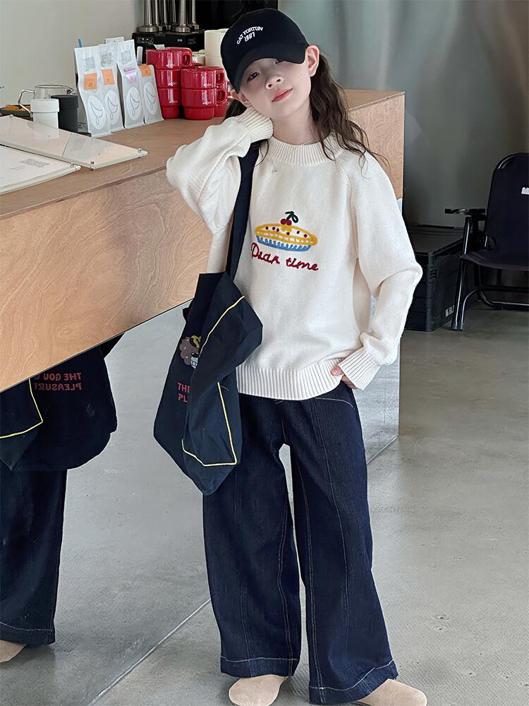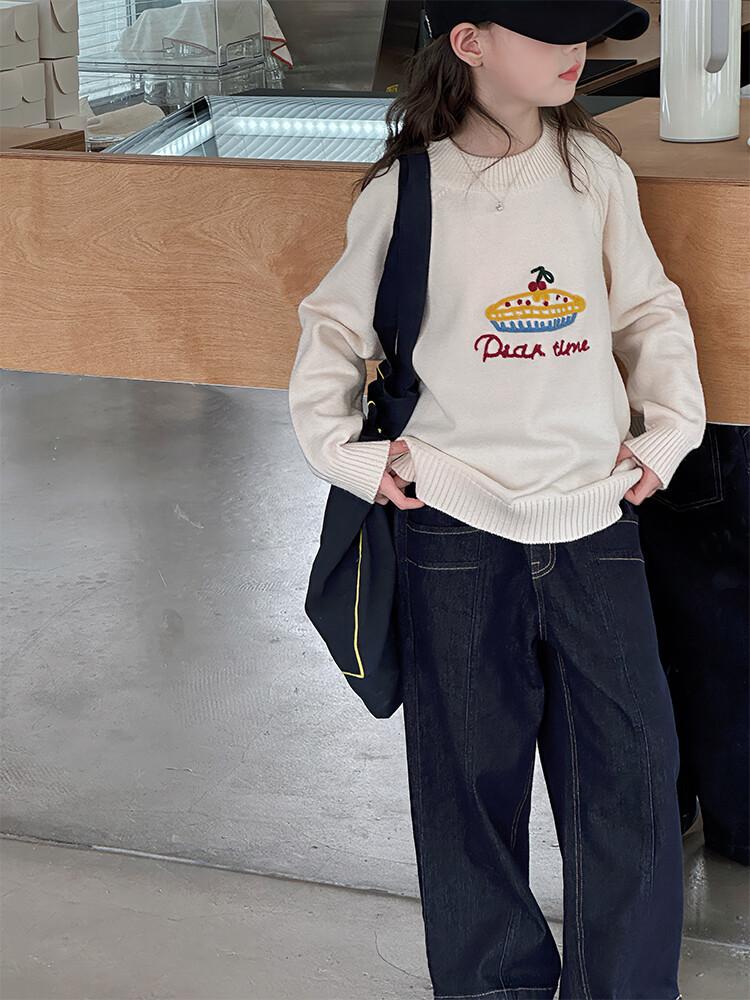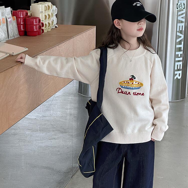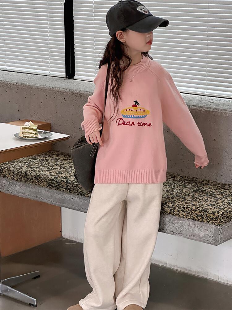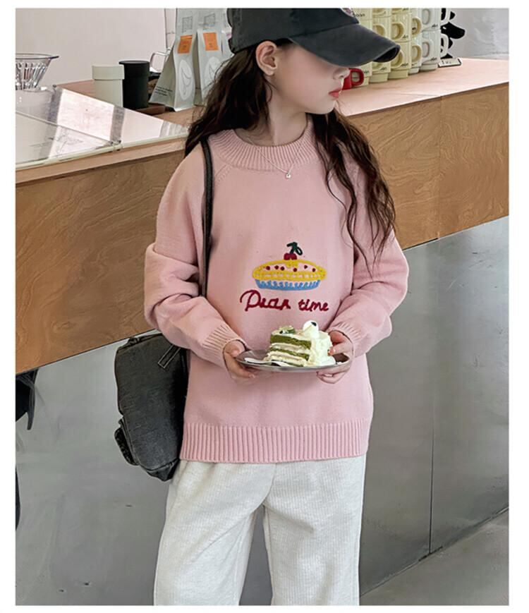 ニット セーター ガールズ 子供服 秋冬 トップス 長袖 丸首 120 130 140 150 160 170 ピンク 杏色 かわいい 韓国風 普段使い 中大 キッズ