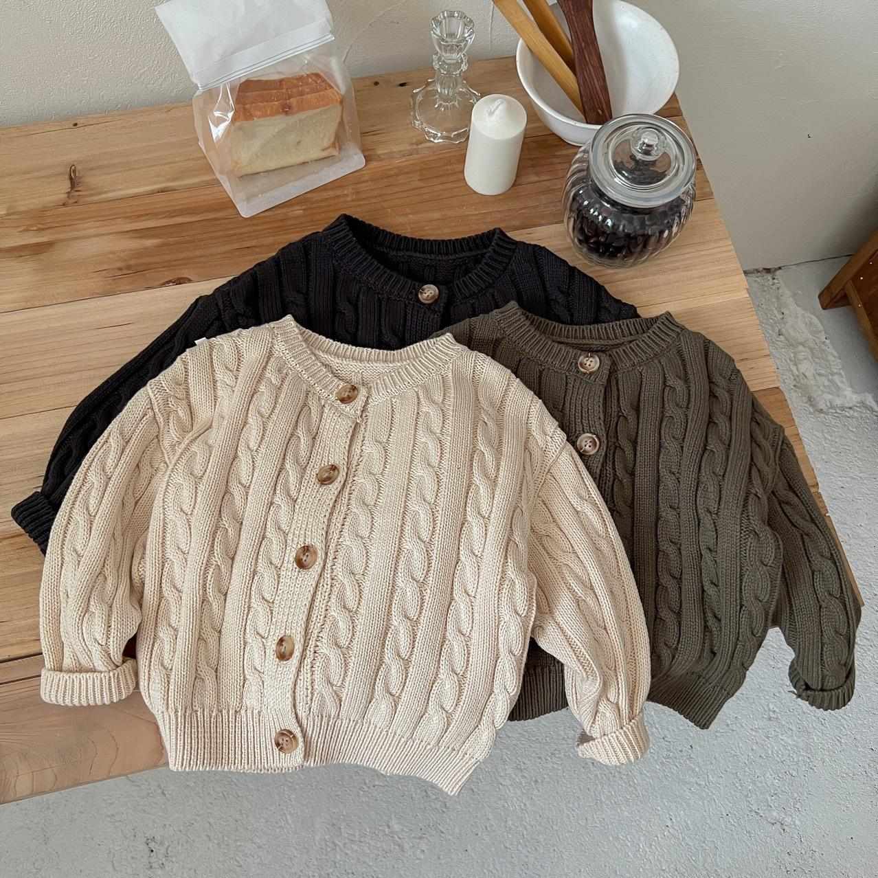 子供服 ニットカーディガン ベビー 男女兼用 秋冬 レトロ ケーブル編み セーター トップス 韓国風 おしゃれ かわいい 綿100% 柔らかい 暖かい 男の子 女の子 普段使い