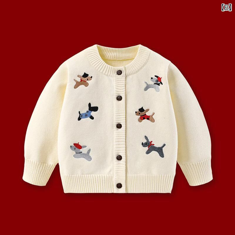 ニット カーディガン キッズ 子供服 長袖 トップス 秋冬 男女兼用 かわいい 韓国風 綿100% 通園 通学 普段着 防寒 あったか 73cm 80cm 90cm 100cm 110cm 120cm