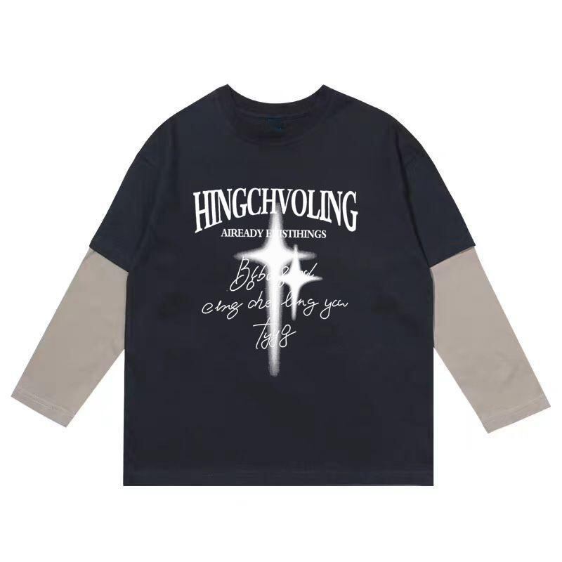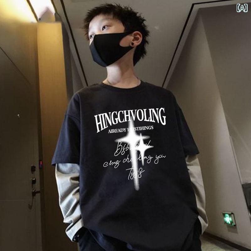 キッズ 男の子 Tシャツ 長袖 フェイクレイヤード トップス 子供服 春秋 中学生 高学年 ボーイズ カジュアル プリント 吸湿速乾 普段着 ブラック グリーン 110cm 120cm 130cm 140cm 150cm 160cm 170cm