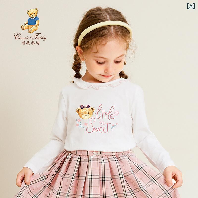 子供服 Tシャツ 女の子 長袖 春秋 かわいい クマ柄 プリント トップス カットソー 通園 普段着 綿95% 90 100 110 120 130 140