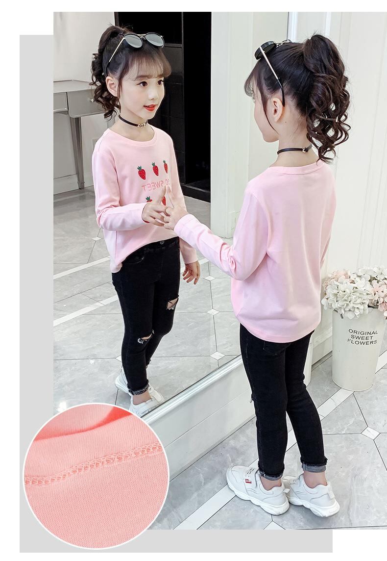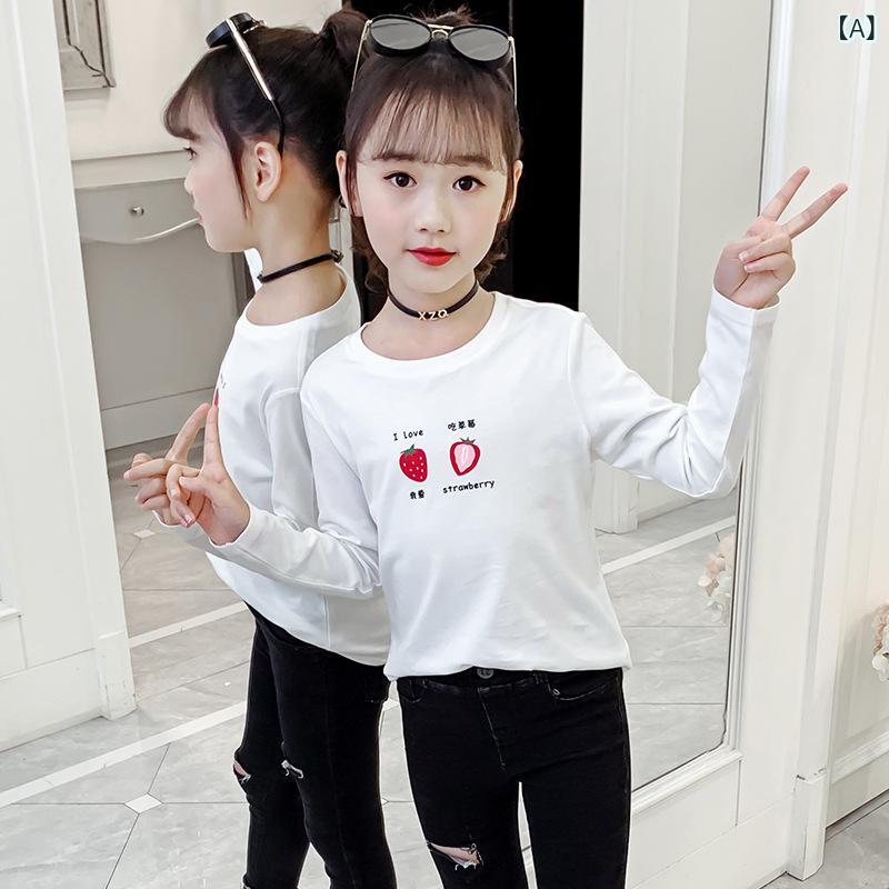 Tシャツ ガールズ 長袖 カットソー トップス 春秋 綿100% かわいい ストライプ柄