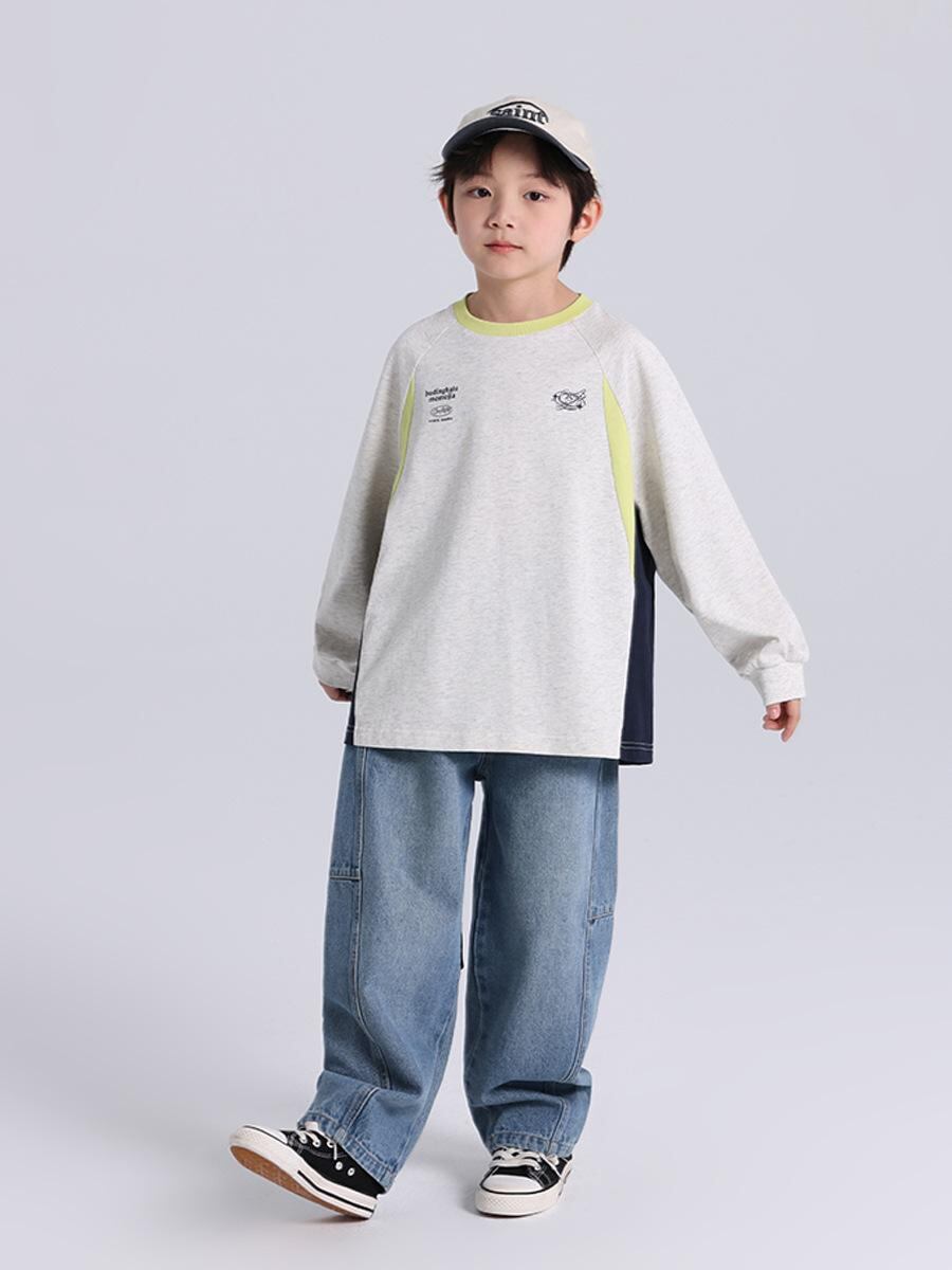 Tシャツ 男の子 子供服 春秋 スポーツ風 切り替え Tシャツ 長袖 綿100% プリント アニマル柄 110cm 120cm 130cm 140cm 150cm 160cm 170cm