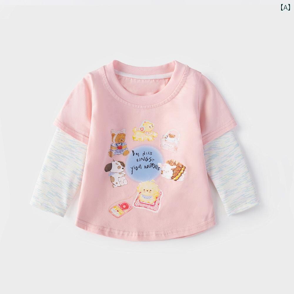 Tシャツ ベビー服 女の子 かわいい 春秋 長袖 70 80 90 100 子供服 トップス カットソー 動物柄 コットン
