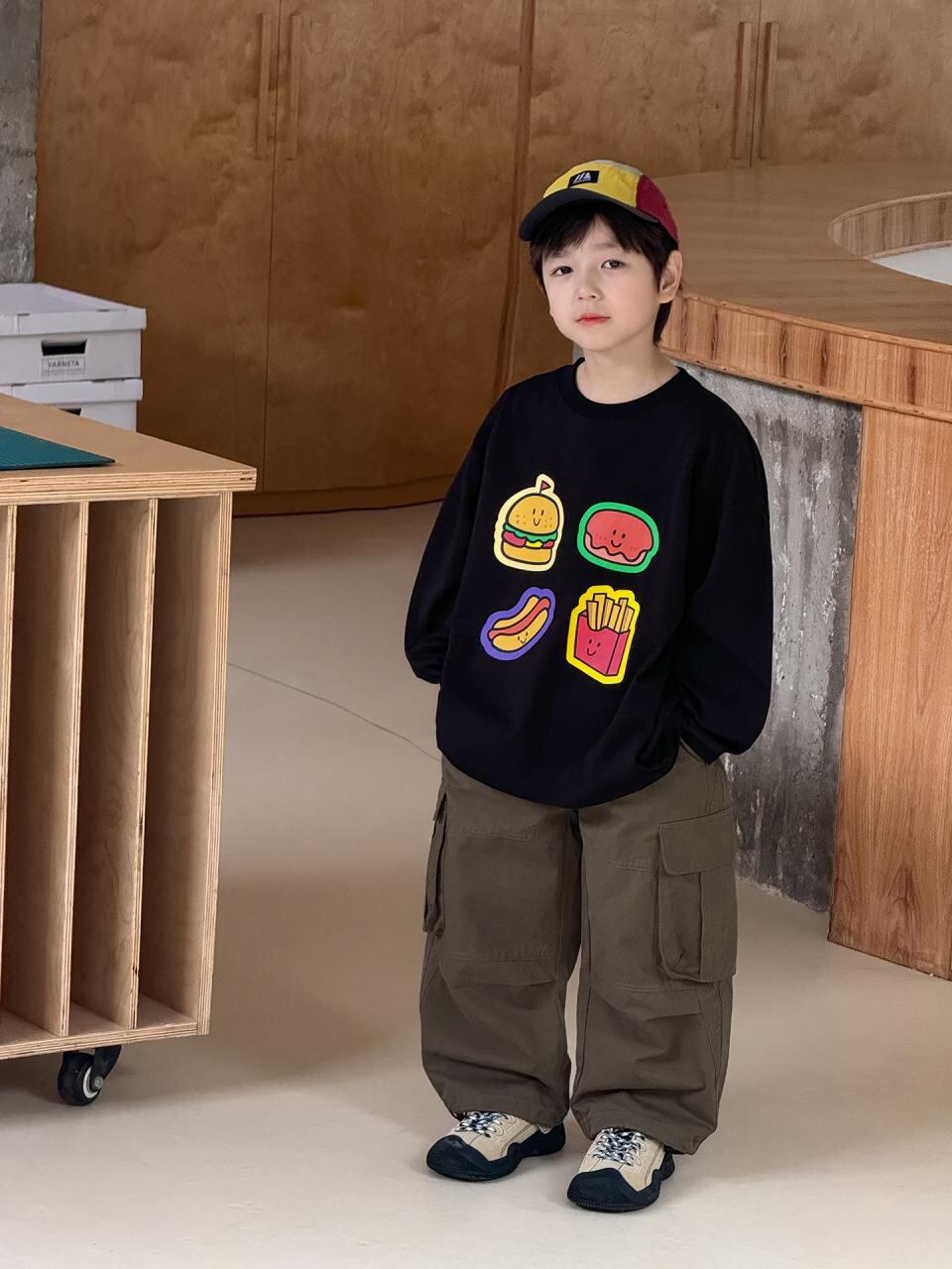 子供服 男の子 Tシャツ 長袖 春秋 ハンバーガー ポテト プリント トップス カットソー 綿100% 90cm 100cm 110cm 120cm 130cm 140cm 150cm