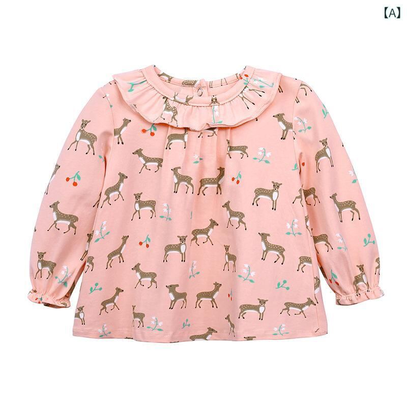 子供服 Tシャツ 女の子 長袖 トップス 春秋 薄手 綿100% 通園 普段着 かわいい 小鹿柄