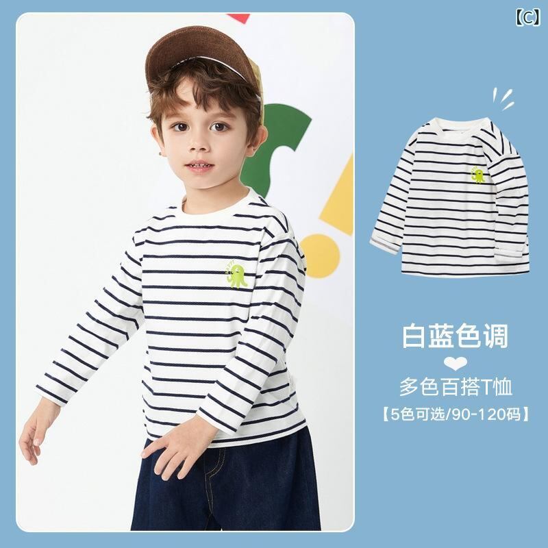 子供服 長袖Tシャツ 春秋 男女兼用 ベビー キッズ おしゃれ かわいい コットン トップス カットソー 90cm 100cm 110cm 120cm 130cm カジュアル アニマル ボーダー ストライプ ホワイト パープル