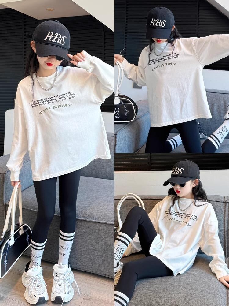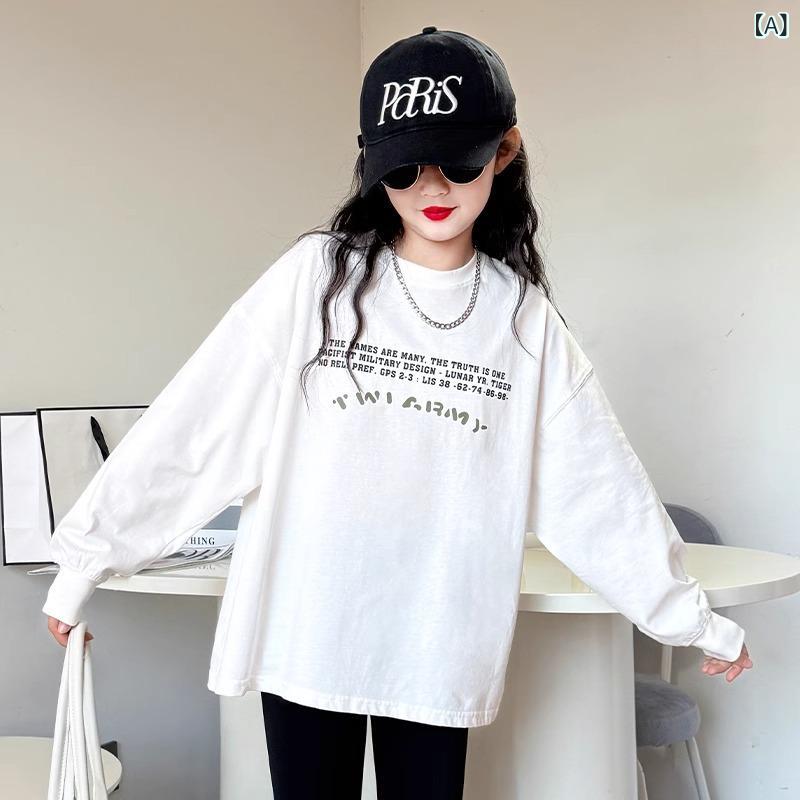 子供服 Tシャツ 女の子 長袖 春秋 綿100% インナー トップス スポーツ カジュアル 普段使い 白 120 130 140 150 160 170