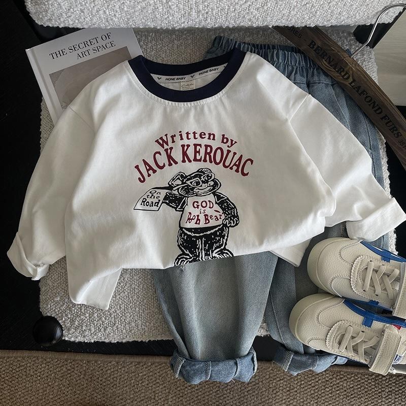 子供服 Tシャツ 春秋 長袖 男女兼用 ベビー服 プリントTシャツ カットソー 綿100% 吸湿速乾 白 90cm 100cm 110cm 120cm 130cm 140cm