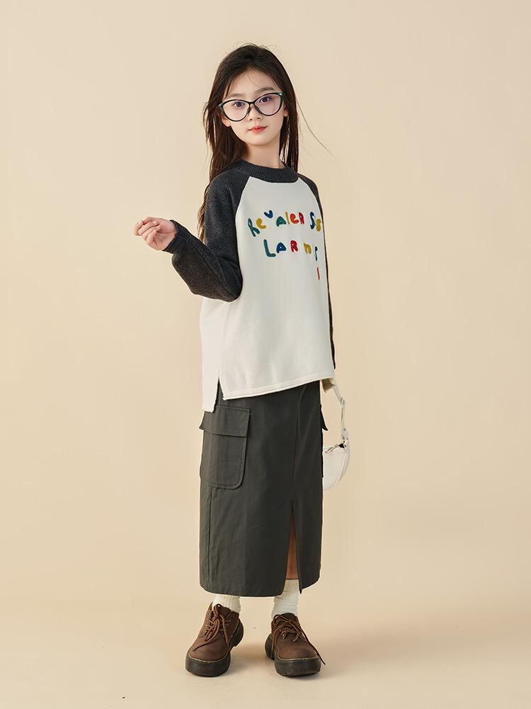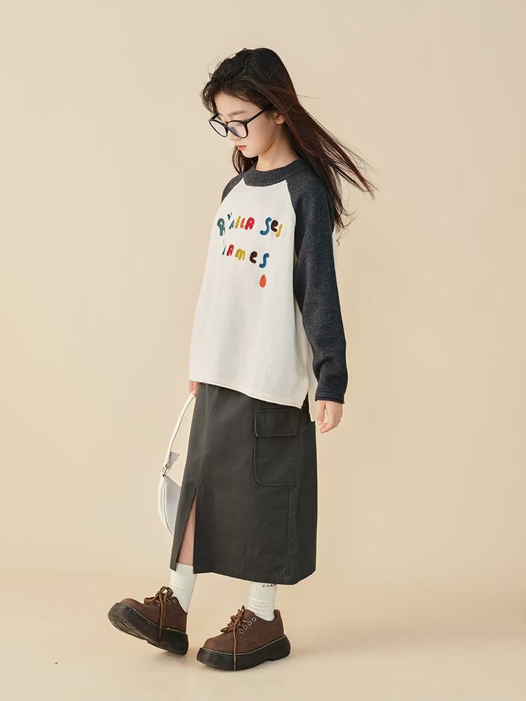 ニット セーター ガールズ 子供服 トップス 秋冬 厚手 長袖 プルオーバー 丸首 かわいい ゆったり 普段着