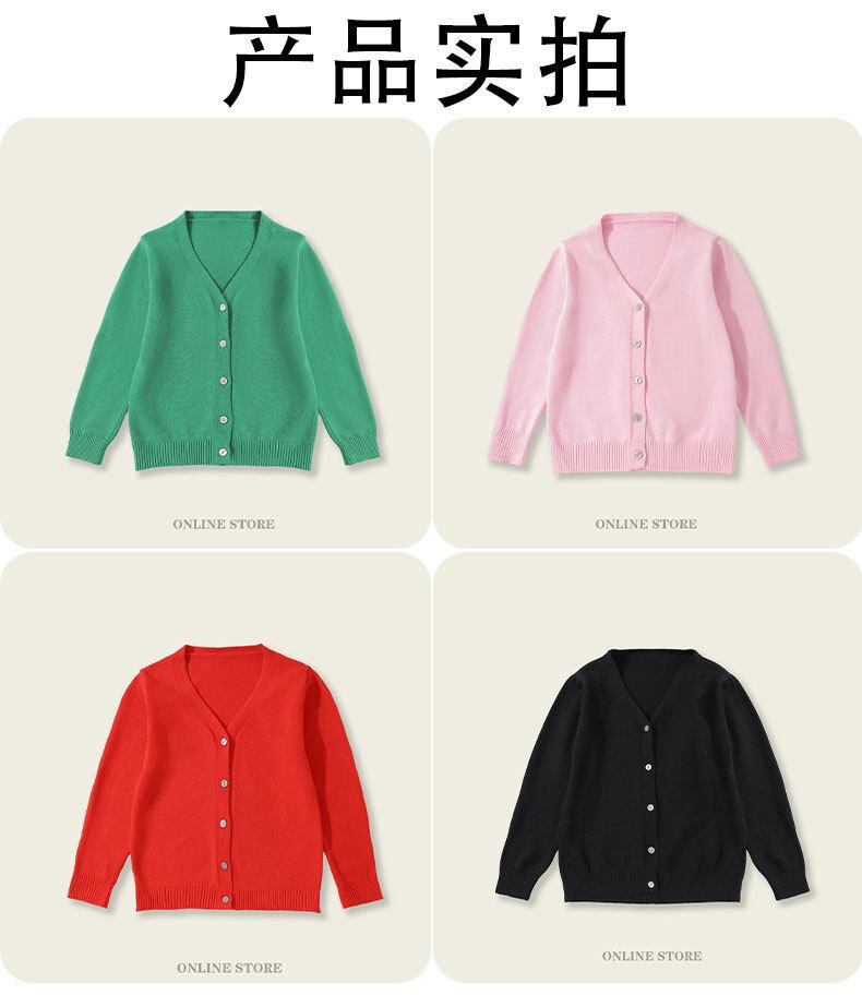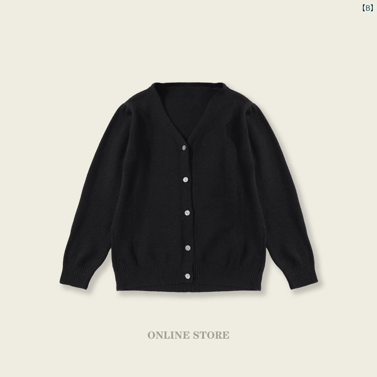 ニット カーディガン キッズ 子供服 Vネック 薄手 トップス 女の子 男の子 中学生 小学生 春秋 無地 長袖 アウター 普段着 部屋着 グレー ブラック ピンク系