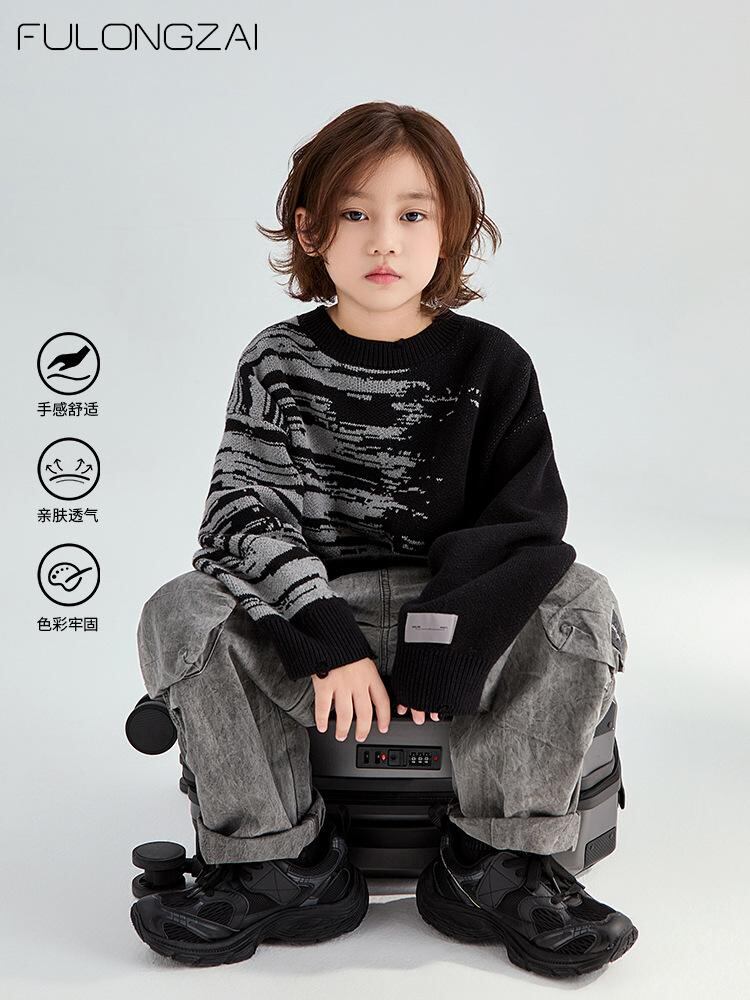 ニット キッズ 子供服 男女兼用 中大童サイズ 長袖 コットン ゆったりシルエット 韓国風 ブラック