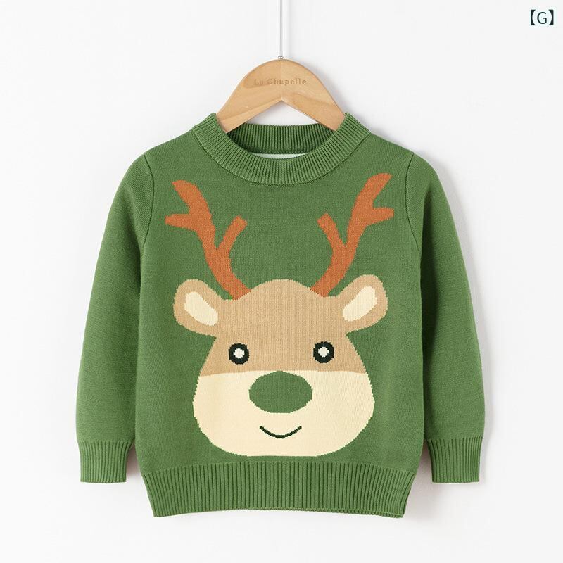 子供服 セーター 長袖 クリスマス ニット トップス カットソー 男女兼用 男の子 女の子 丸首 かわいい 韓国風 アニマル ストライプ 綿 春秋冬 2歳 3歳 4歳 5歳 6歳 ブルー レッド ネイビー グリーン グレー