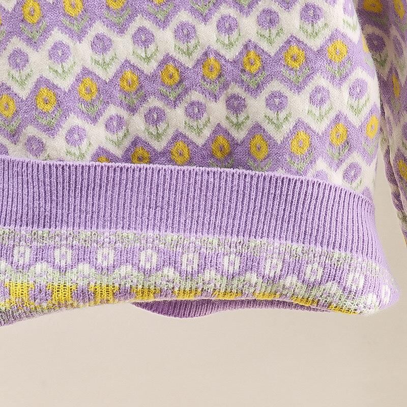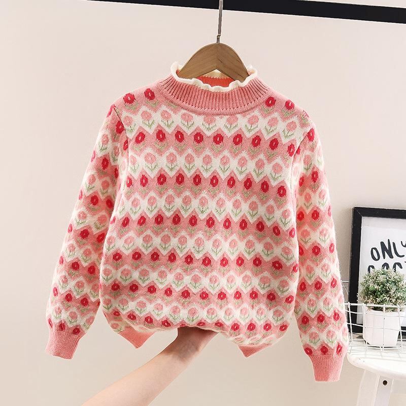 ニット セーター ガールズ 子供服 冬服 韓国風 ストライプ トップス 厚手 防寒 普段着 かわいい おしゃれ レッド パープル系 110cm 120cm 130cm 140cm 150cm 160cm