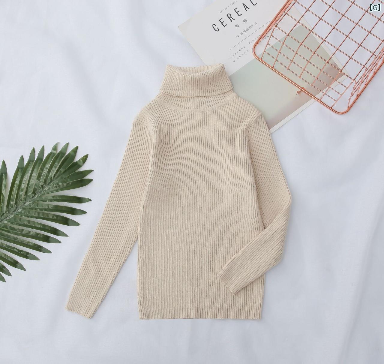子供 ニット セーター 秋冬 長袖 コットン 高 襟 無地 トップス カジュアル 普段使い かわいい 男の子 女の子 キッズ 幼児 グレー 白色 赤色 緑色 黒色 黄色 杏色 水色 オレンジ色 彩色