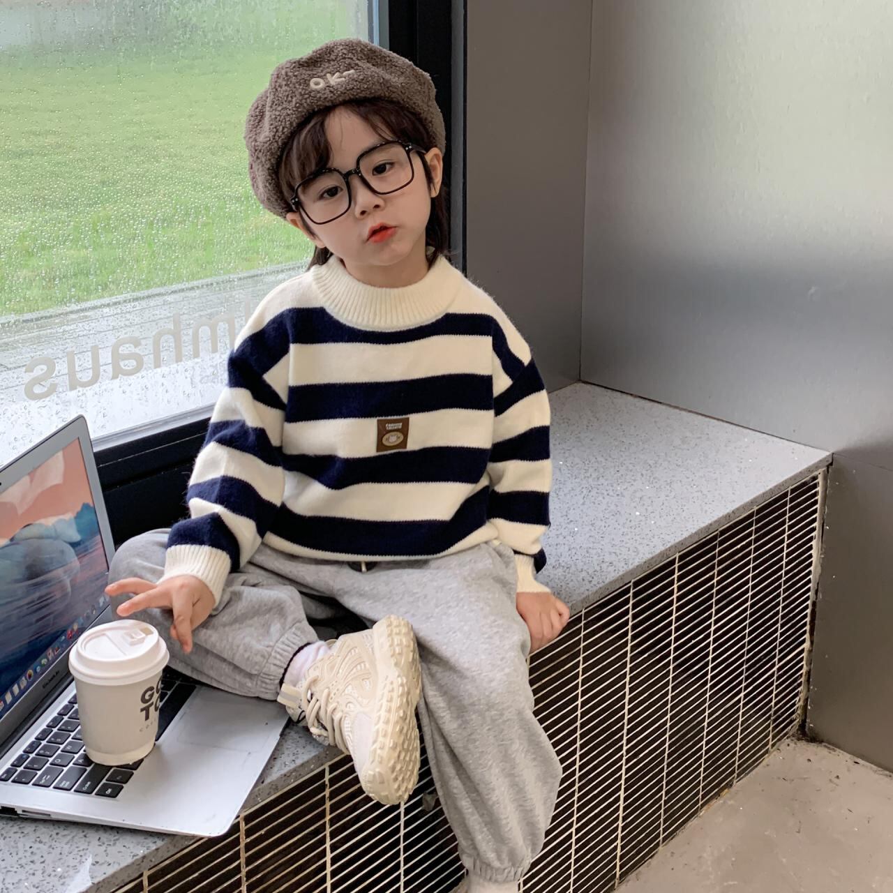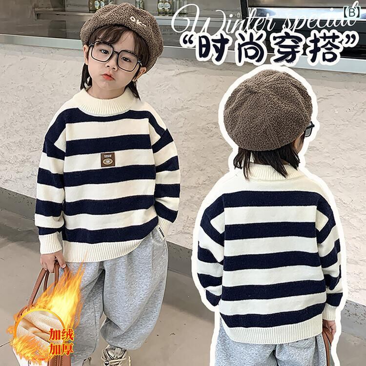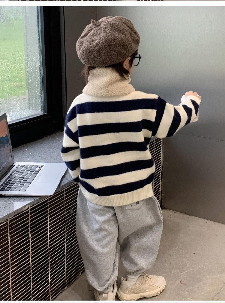 ニット セーター キッズ 子供 秋冬 ボーダー 韓国風 配色 トップス 暖かい 裏起毛 80cm 90cm 100cm 110cm 120cm 130cm 140cm