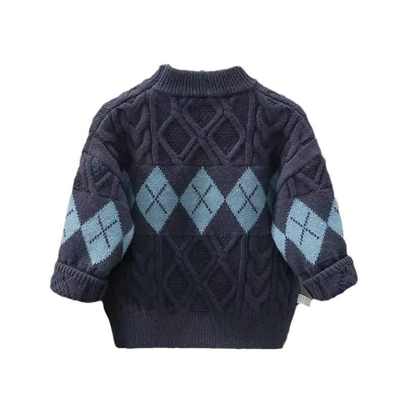 ニット キッズ 男の子 ニットトップス 秋冬 格子柄 セーター 子供服 長袖 丸首 プルオーバー 普段着 通学着 ベージュ グレー 紺