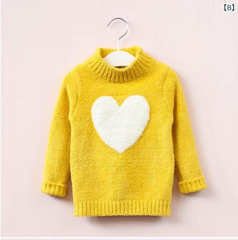 ニット・セーター キッズ 女の子 春秋 韓国風 提花柄 ハート柄 ハーフハイネック 子供服 トップス 半边绒 かわいい 秋冬 白色 黄色 ピンク系 100cm 110cm 120cm 130cm 140cm 150cm 160cm