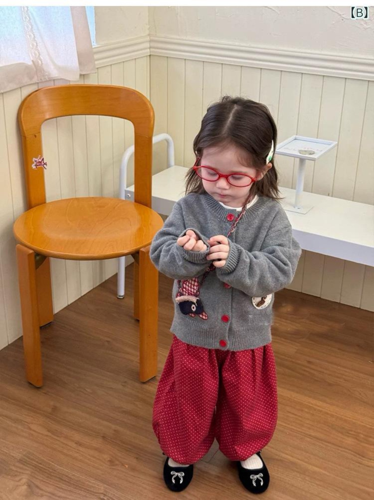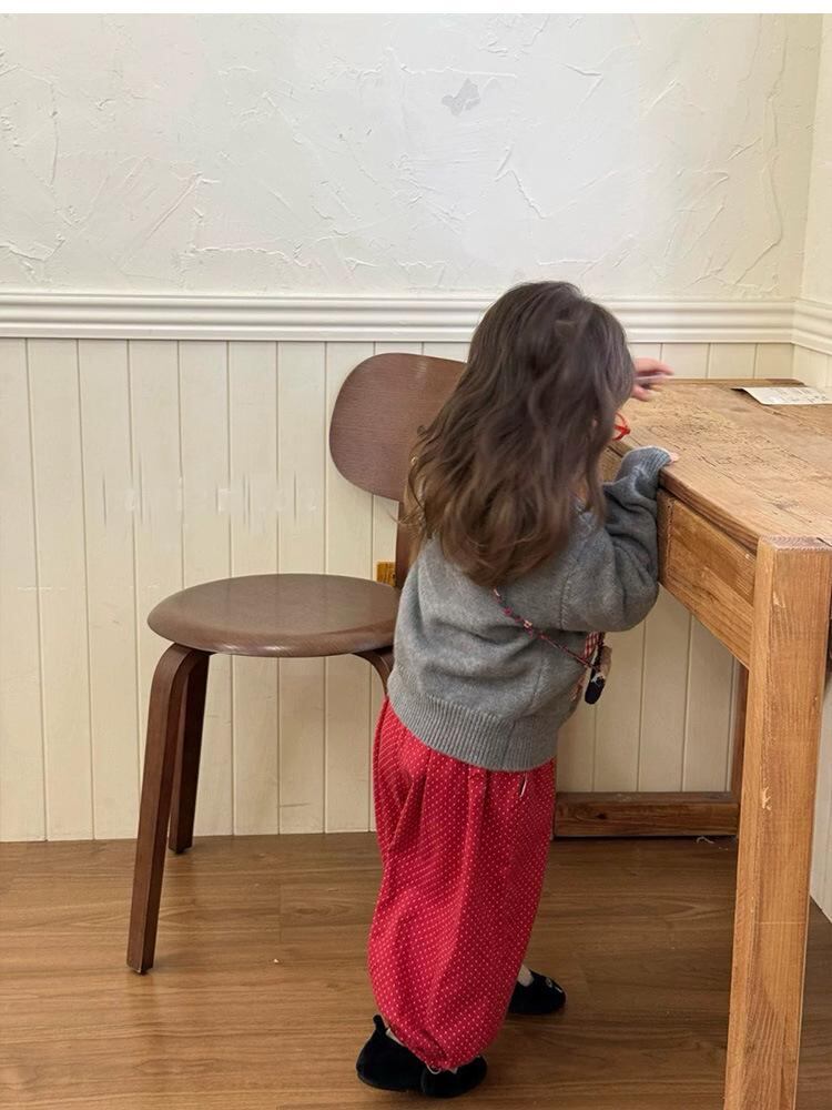 ニットカーディガン 女の子 ベビー キッズ 春秋 格子柄 カートーン 長袖 ニット 綿 かわいい 幼稚園 保育園 グレー レッド 80 90 100 110 120 130