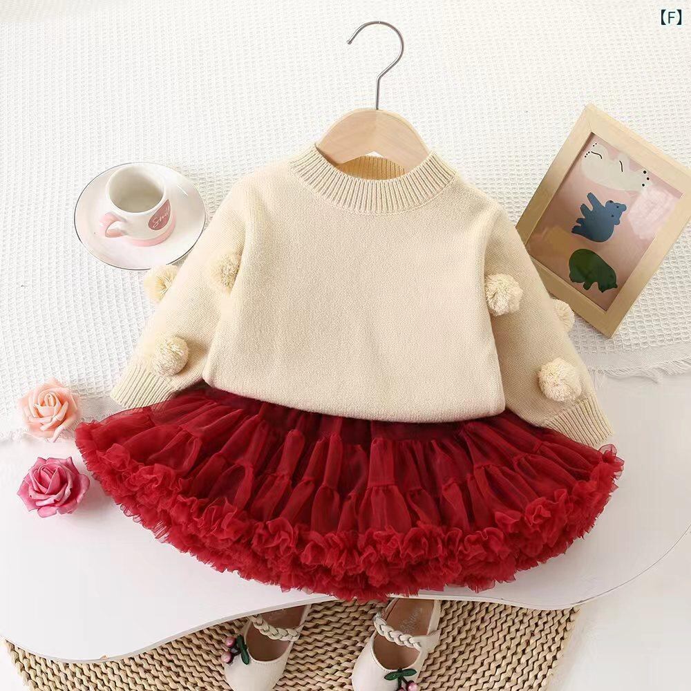 子供服 ニット・セーター 秋冬 かわいい 手編み ボール付き プリンセス風 長袖 プルオーバー 厚手 ピンク系 ニット セーター チュールスカート セットアップ 女の子 子供 中小 子供服 90 100 110 120 130