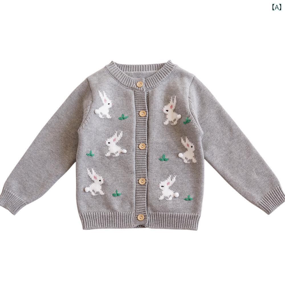 子供服 ニット カーディガン 女の子 ベビー 幼児 小学生 コットン 長袖 トップス かわいい ウサギ アニマル グレー 淡い黄色