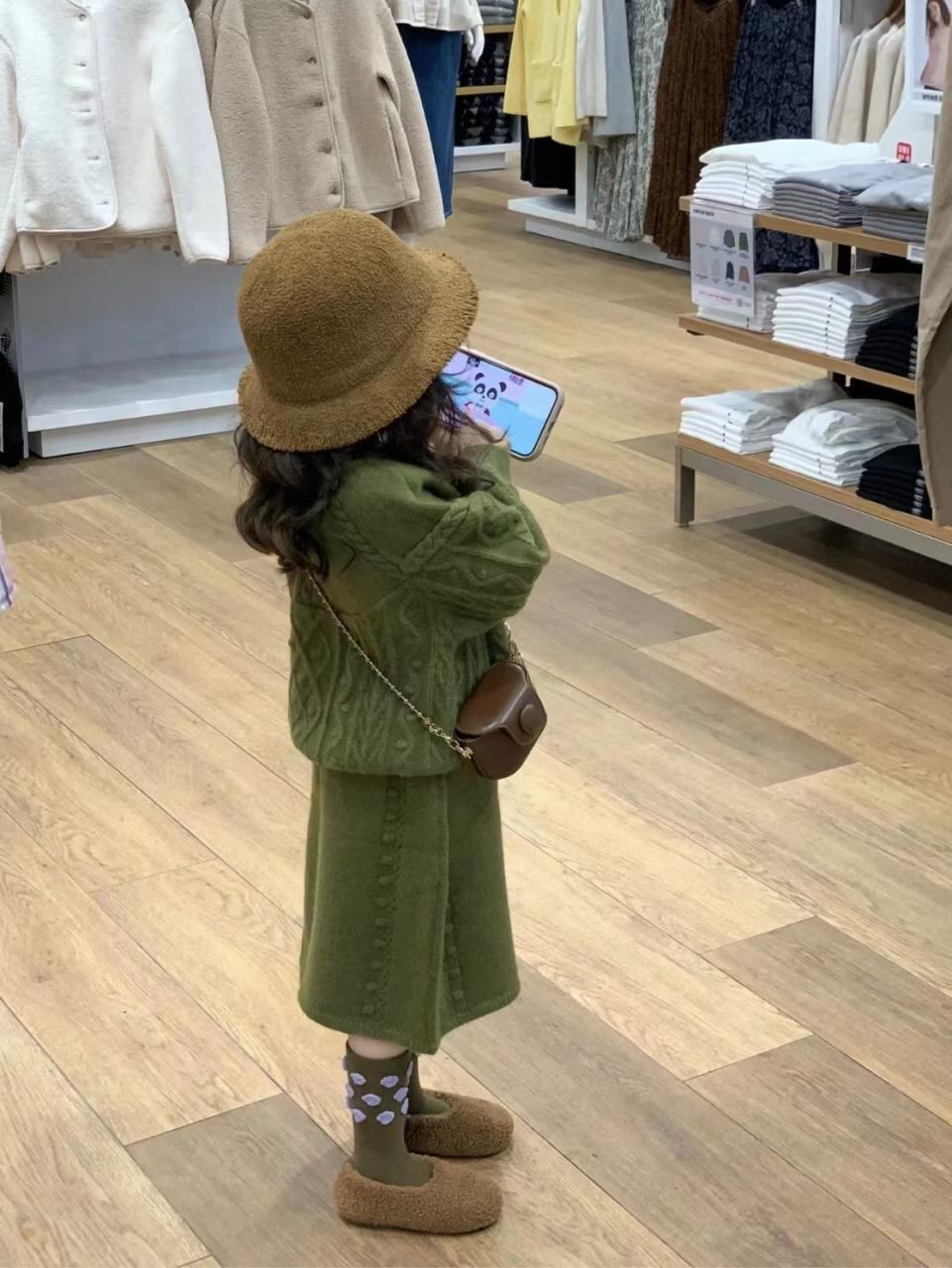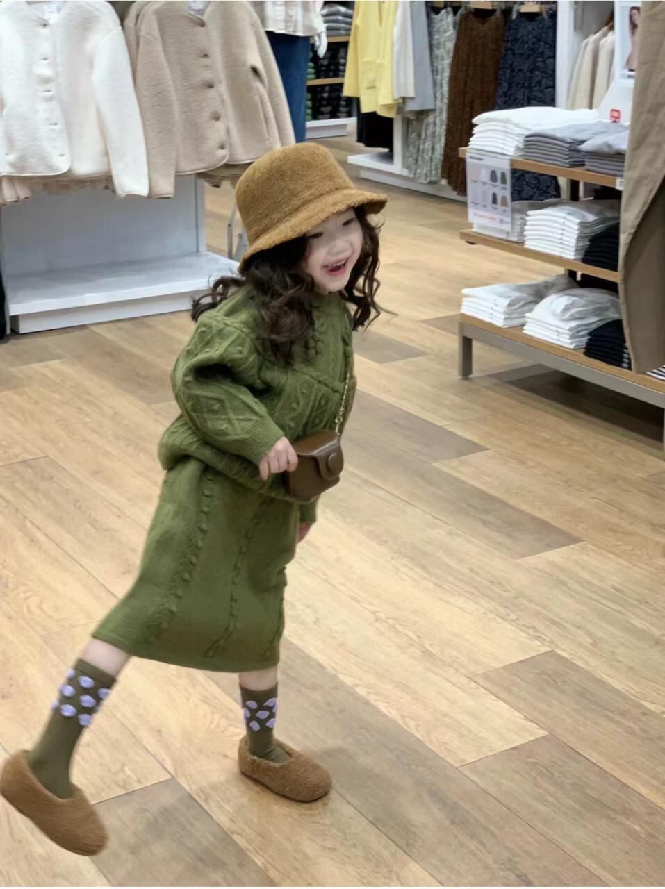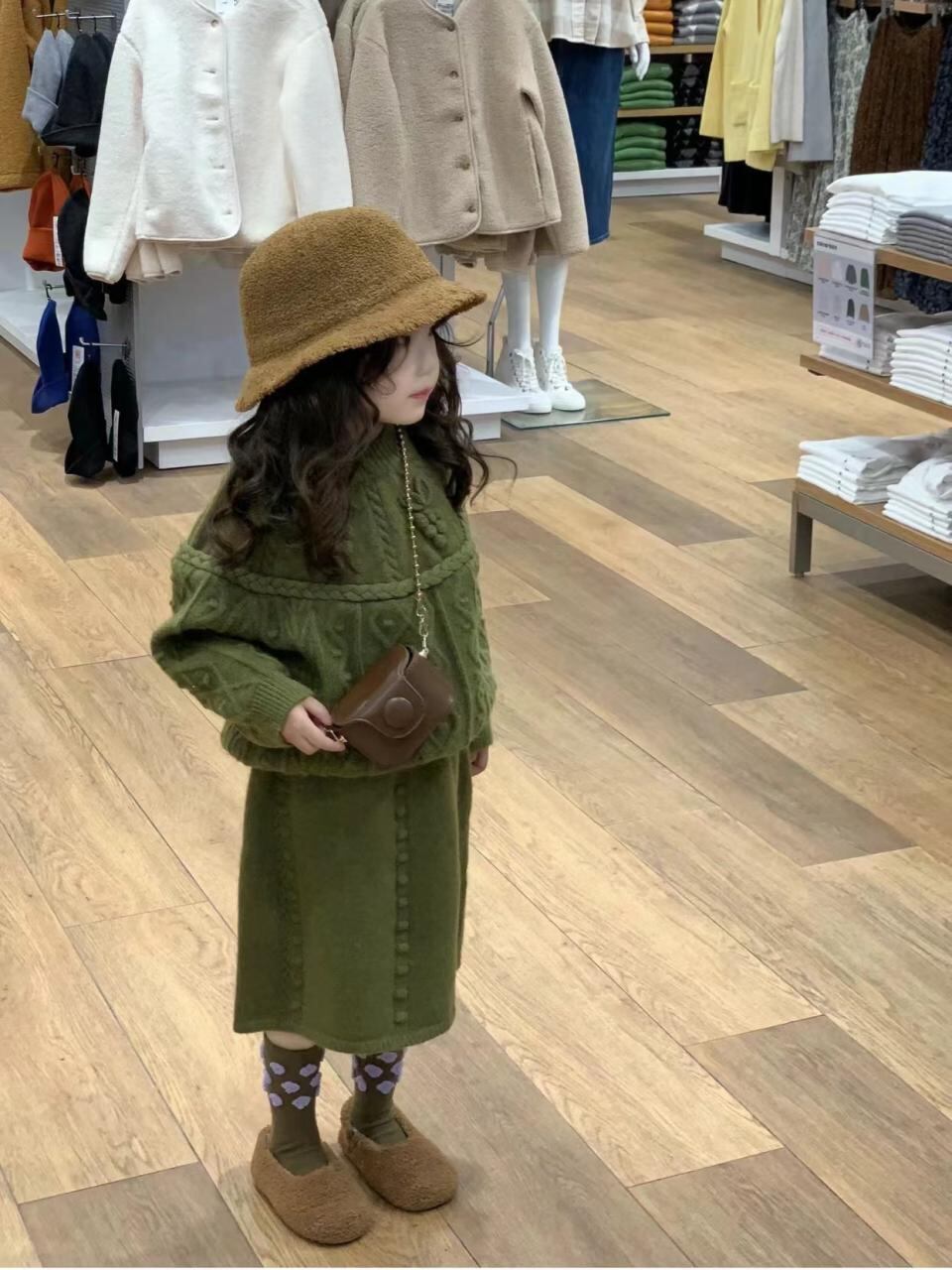 子供服 ニット セーター セットアップ 女の子 墨緑色 スカート 長袖 3歳 4歳 5歳 6歳 7歳 8歳 90cm 100cm 110cm 120cm 130cm 140cm 柔らかい 秋 春