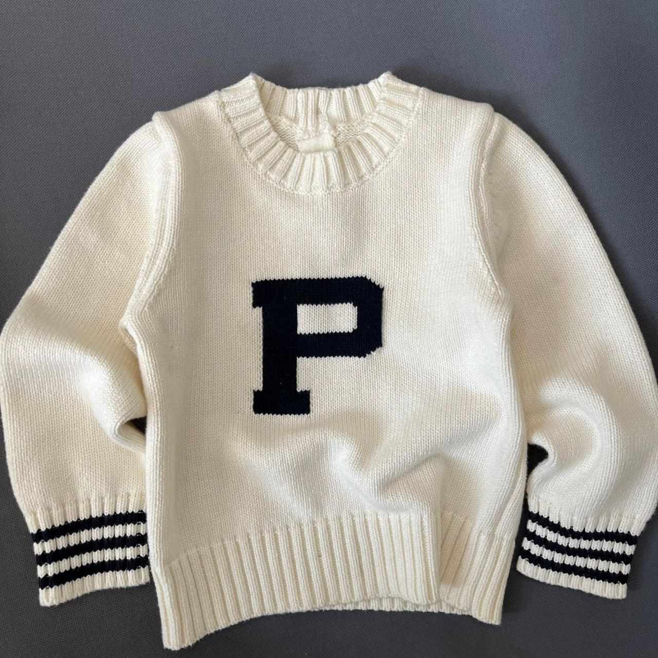 子供服 ニット セーター 丸首 コットン100% 春物 長袖 アルファベット ミドル丈 トップス 男の子 女の子 ベージュ 80cm 90cm 100cm 110cm 120cm 130cm