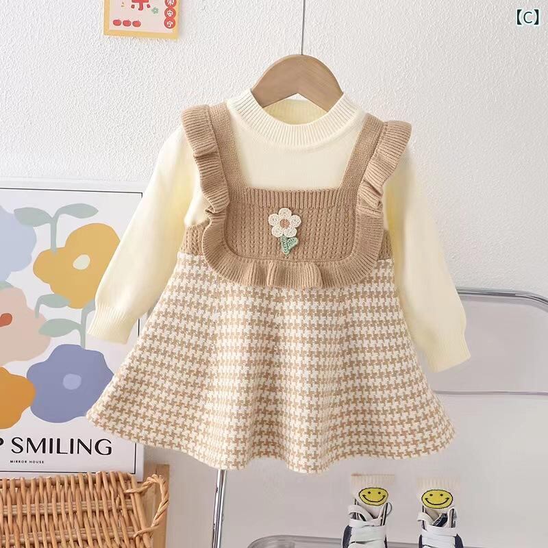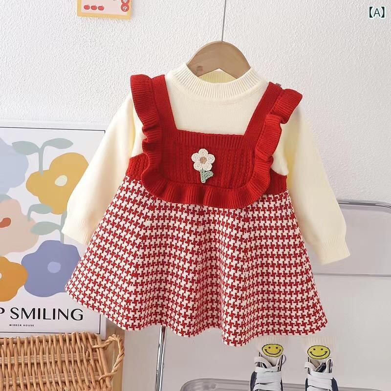 ワンピース キッズ 女の子 ニット 秋冬 子供服 チュール プリーツスカート かわいい おしゃれ ガーリー 長袖 普段着 お出かけ着 レッド グリーン ベージュ 80cm 90cm 100cm 110cm 120cm 130cm