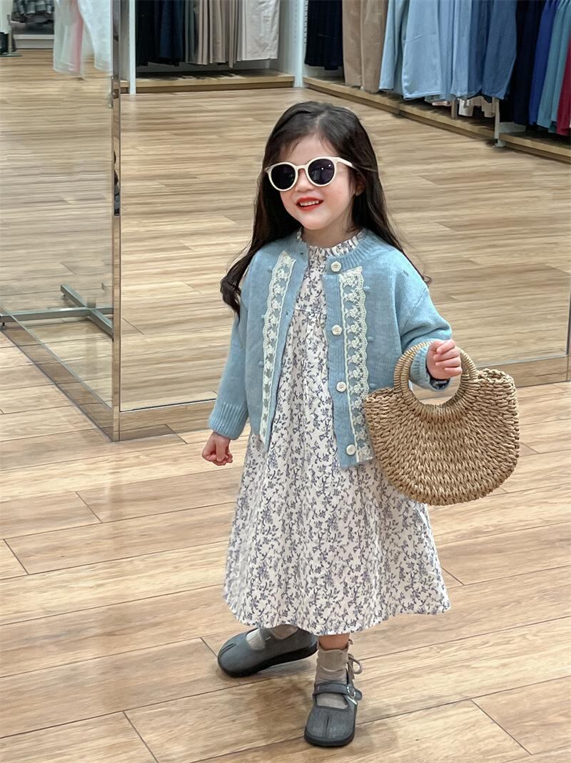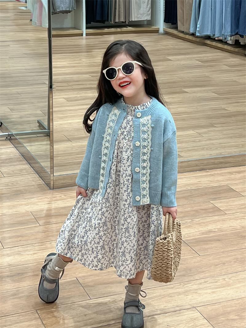 子供服 女の子 ニット カーディガン レース 水色 アウター ケーブルニット 長袖 秋 プリンセス かわいい 普段使い 公園着