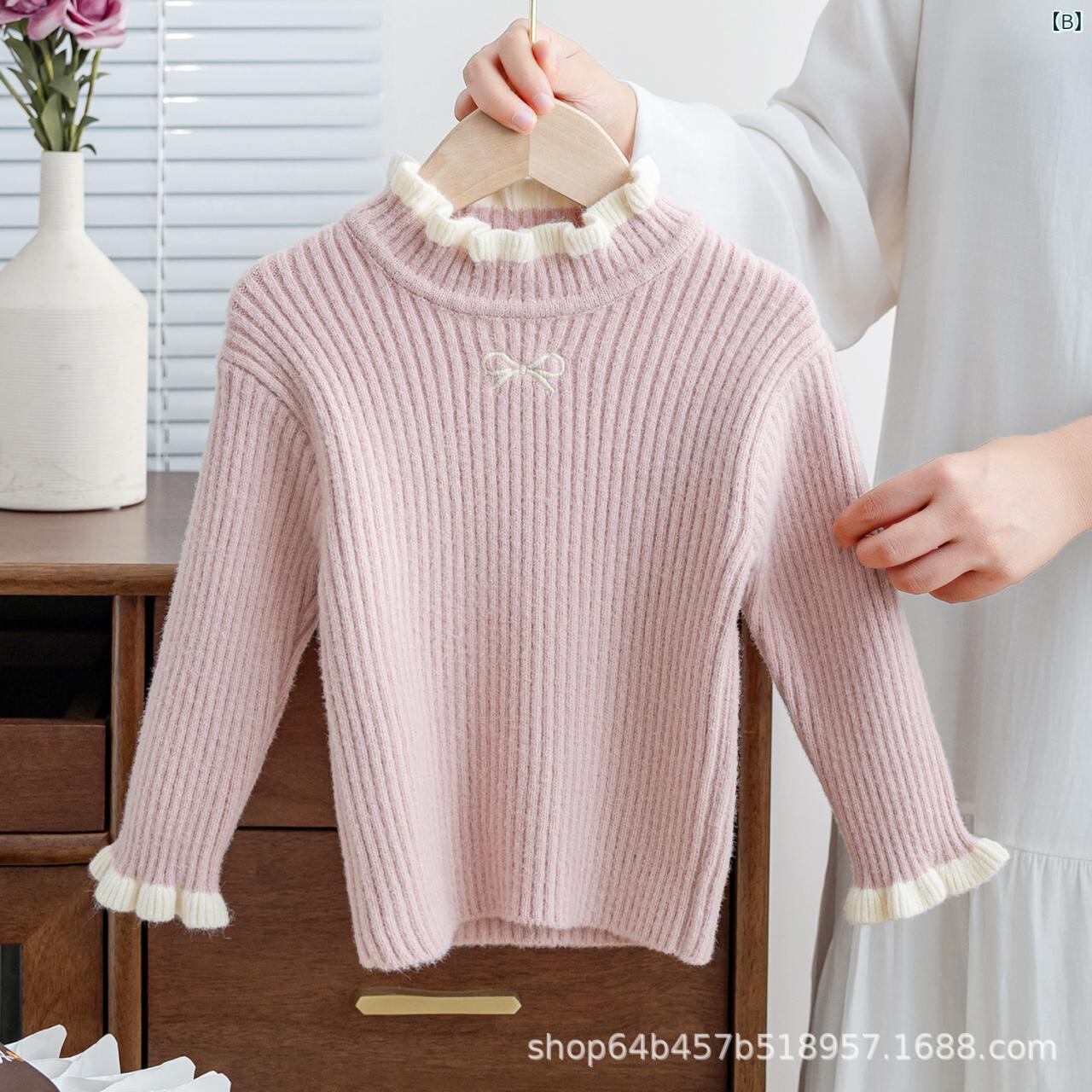 子供服 セーター 女の子 冬 ニット トップス 厚手 暖かい かわいい おしゃれ 花柄 長袖 丸首 80cm 90cm 100cm 110cm 120cm 130cm ピンク系