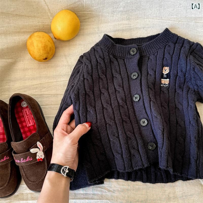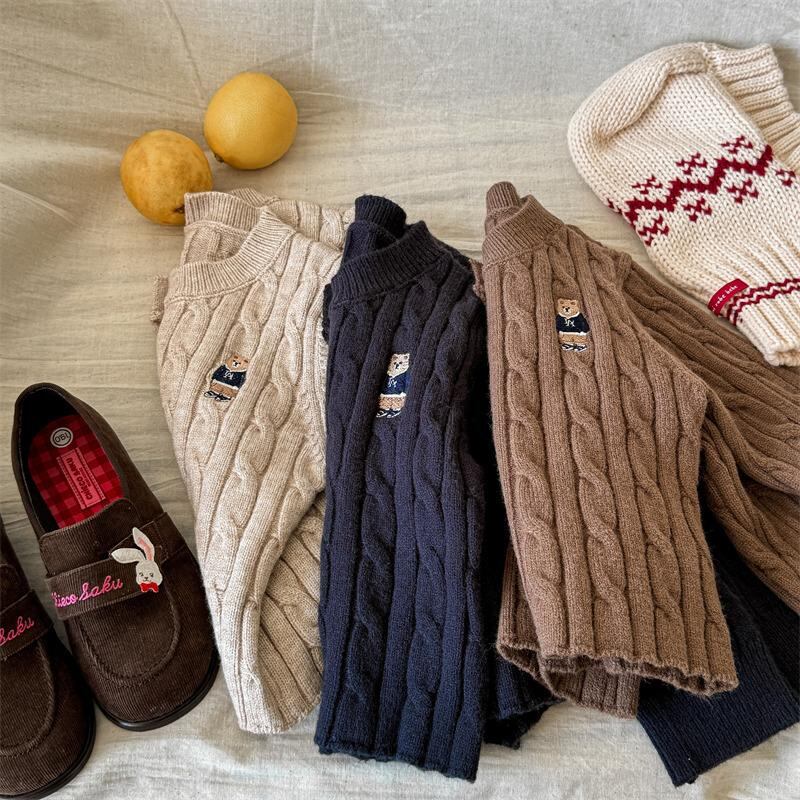 子供服 ニットカーディガン 秋冬 ベビー ユニセックス 小熊 刺繍 長袖 厚手 暖かい 男女兼用 韓国風 かわいい 幼児 トップス アウター 深灰色 杏色