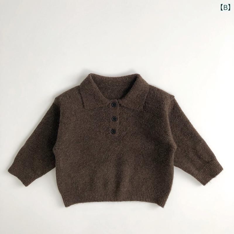 子供服 セーター 秋冬 韓国風 男の子 女の子 ニット レトロ 翻领 アウター トップス 防寒 普段着 驼色 コーヒー色