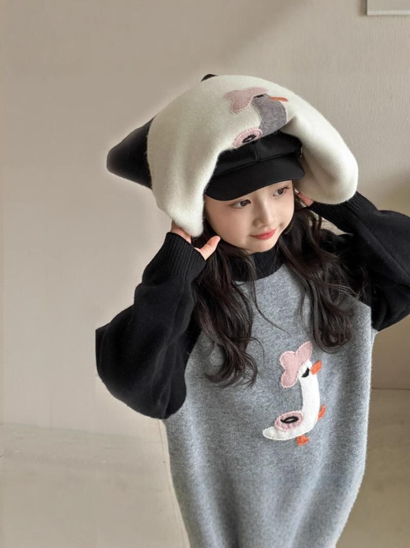 子供服 ニット セーター 秋冬 女の子 長袖 ウール混紡 撞色 ラウンドネック プルオーバー 普段着 かわいい ガールズ
