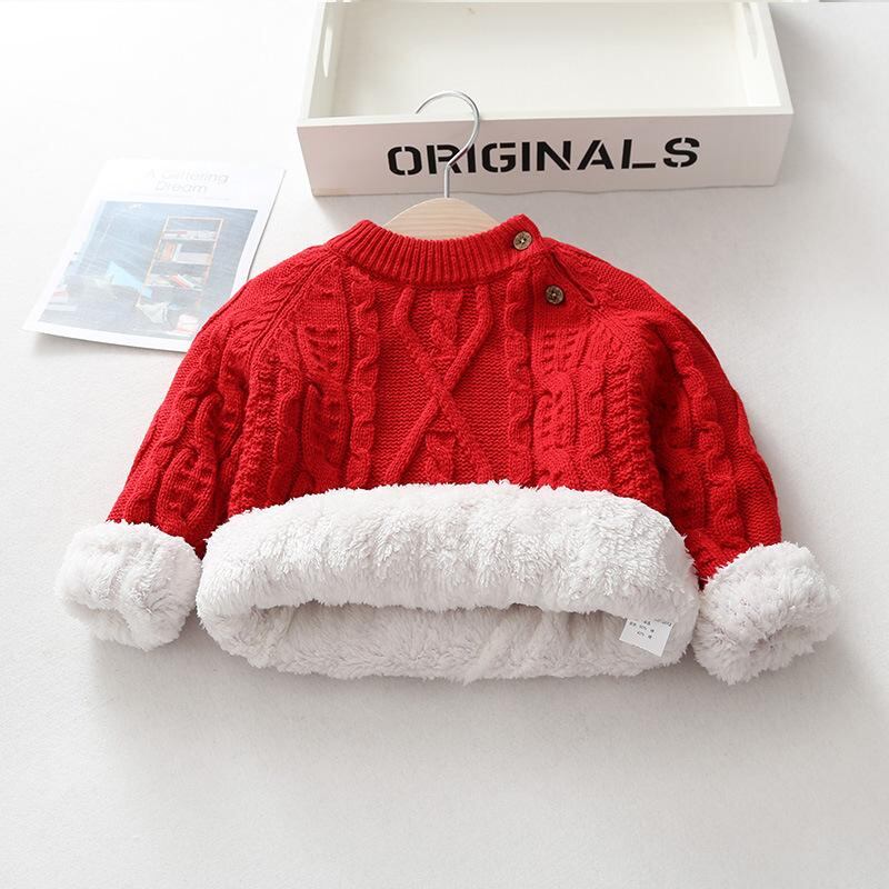 子供服 セーター 秋冬 ニット ベビー 男女兼用 裏起毛 厚手 韓国風 トップス 肩ボタン 長袖 73 80 90 100 110 120cm かわいい あったか インナー