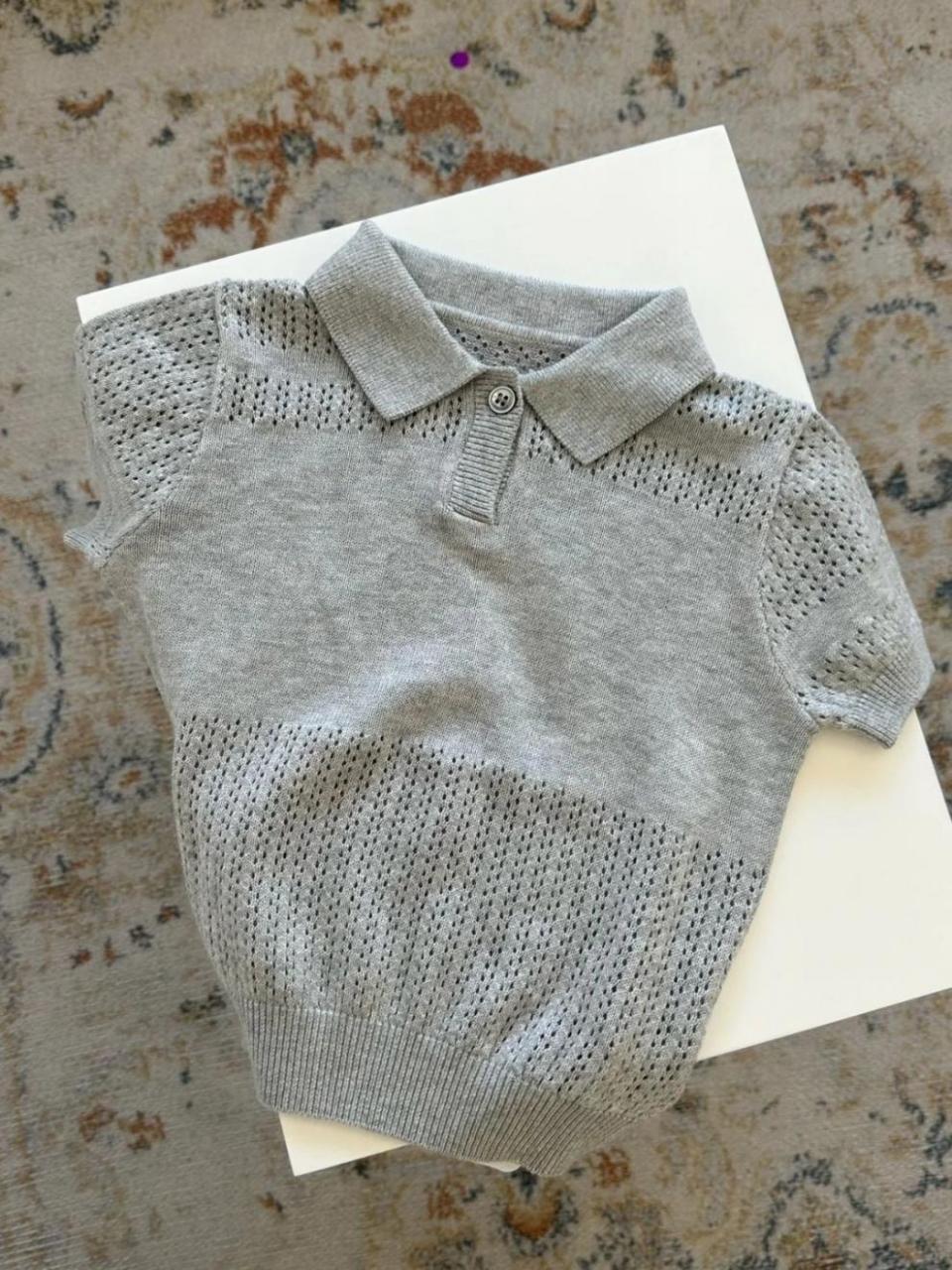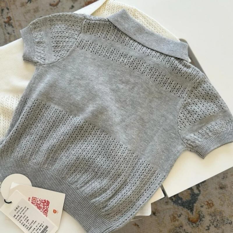 子供服 ニット トップス 半袖 薄手 ベビー ポロシャツ 接触冷感 80 90 100 110 120 130 グレー 杏色