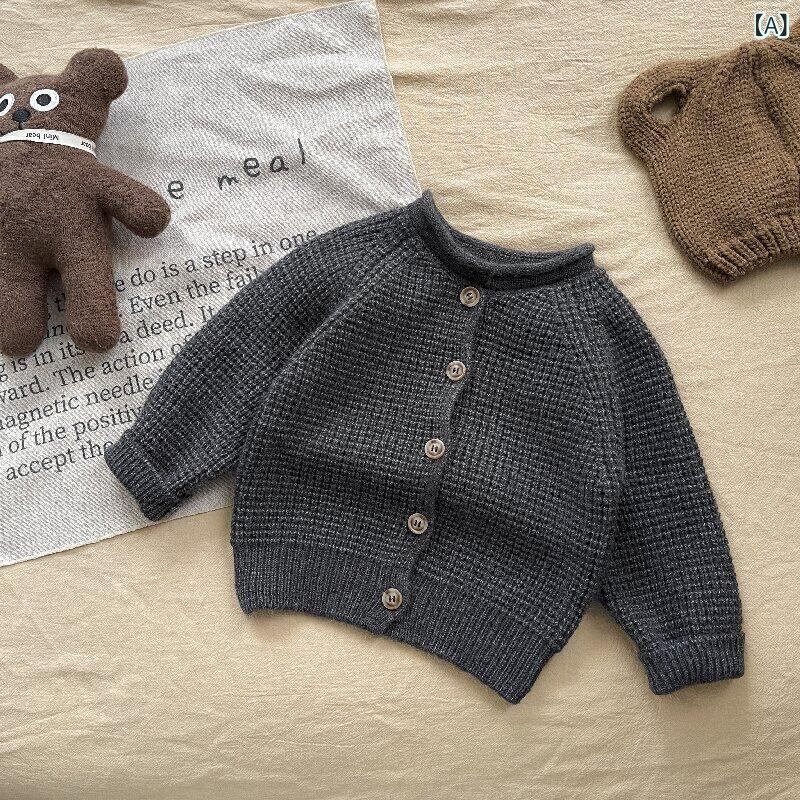 ベビー服 ニット カーディガン 春秋 子供服 男の子 おしゃれ かわいい セーター アウター 丸首 長袖 幼児 普段着 トップス グレー カーキ